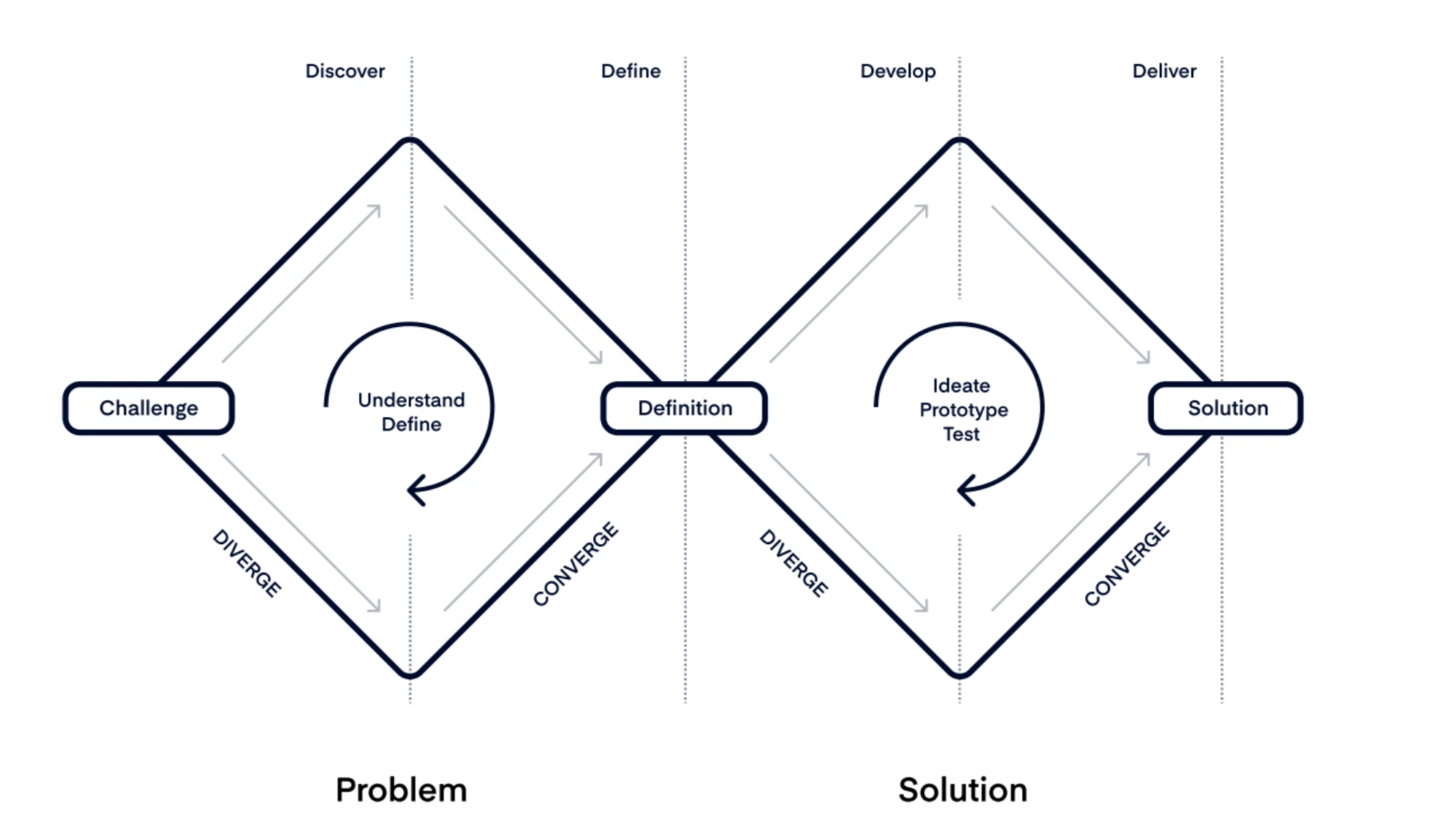 I follow the Double Diamond Theory in my design journey, encompassing the vital stages of Discovery, Definition, Ideation, and Implementation in all my projects.