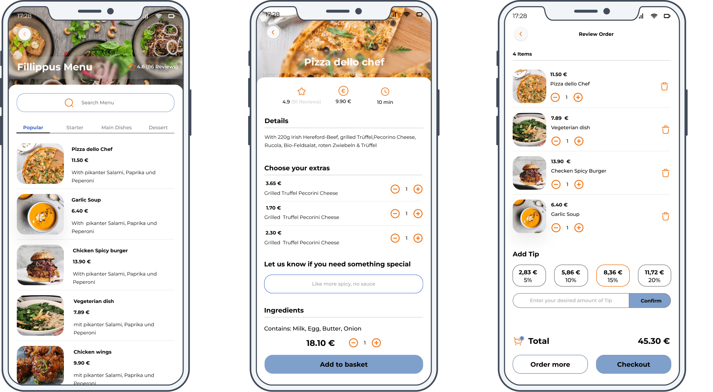 Categorized Menu: Organizing the menu into categories for easier navigation and selection.