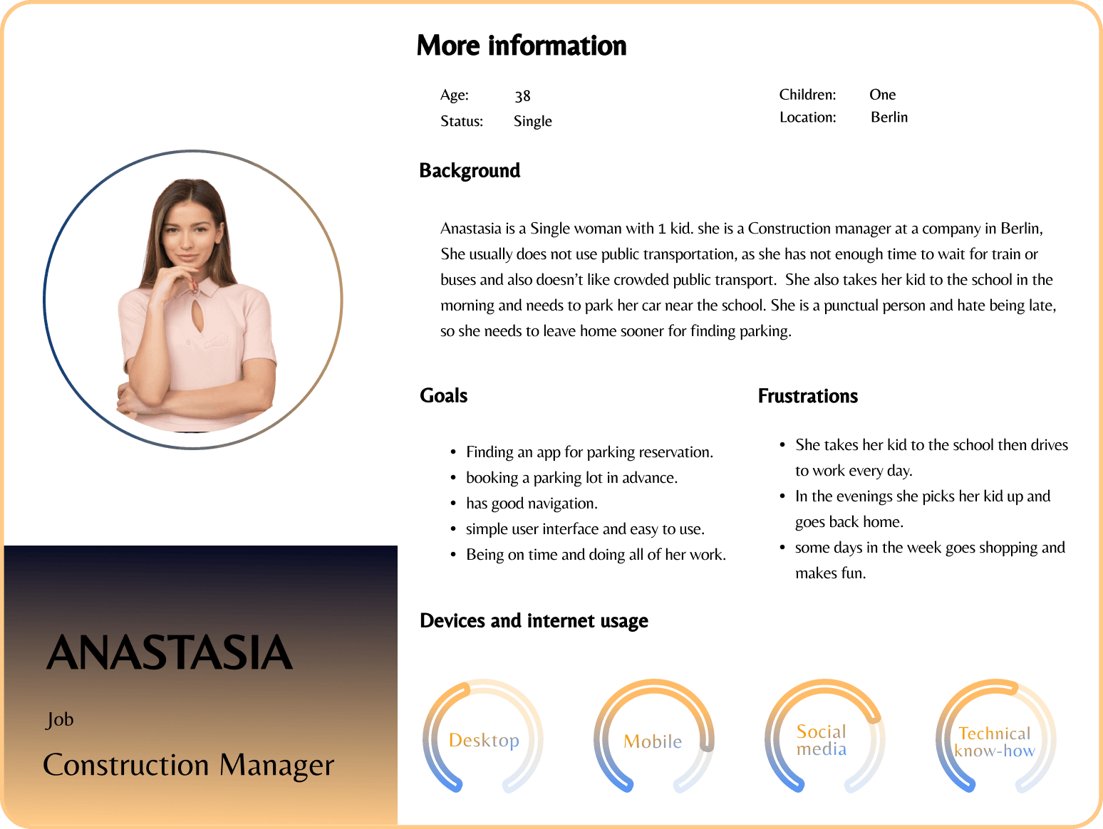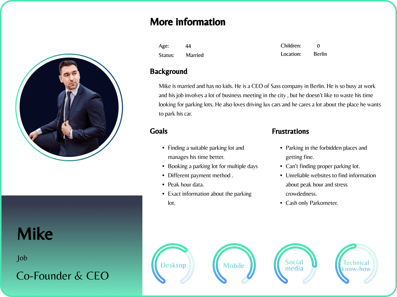 Based on the interview we conducted with our target groupand the collected data during the interviews, we came up with two differentuser personas. The goal of these personas is to help us empathize more deeplywith users in understanding the problem and the goals that we set to achieve.